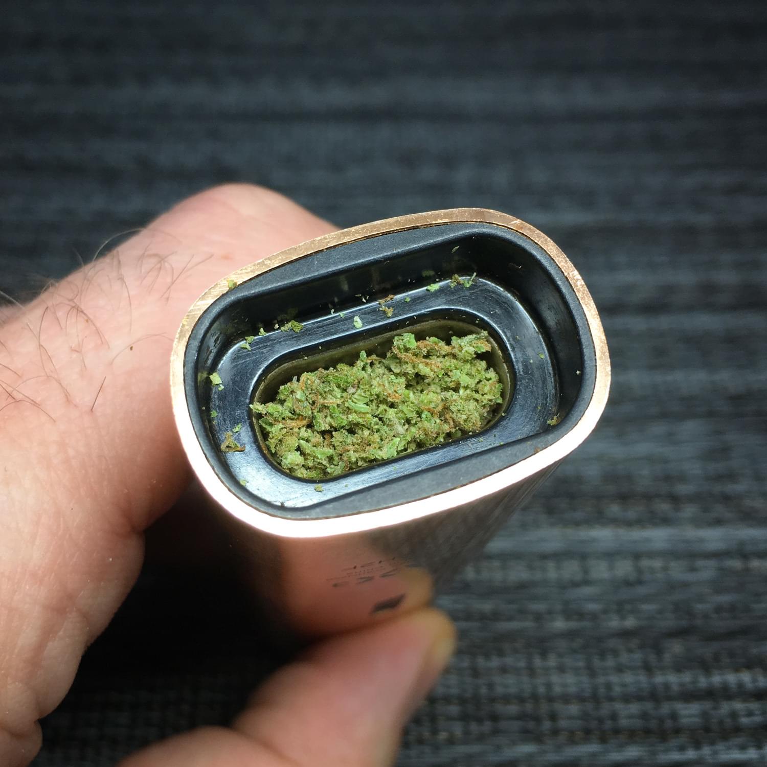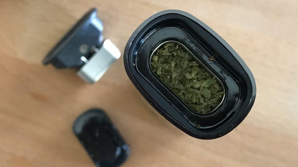 Put the oven lid on and then press the mouthpiece to warm up the flower. The resulting effect is a fine vapor of THC where one full oven can equal 1-2 .5 gram joints.