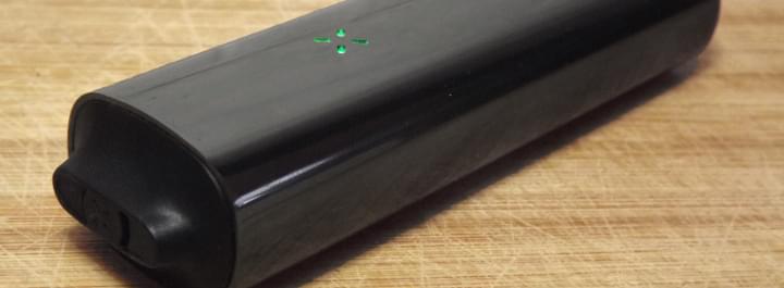 The PAX looks like a portable battery charger. It has a mouthpiece on one side that you press down to turn it on.